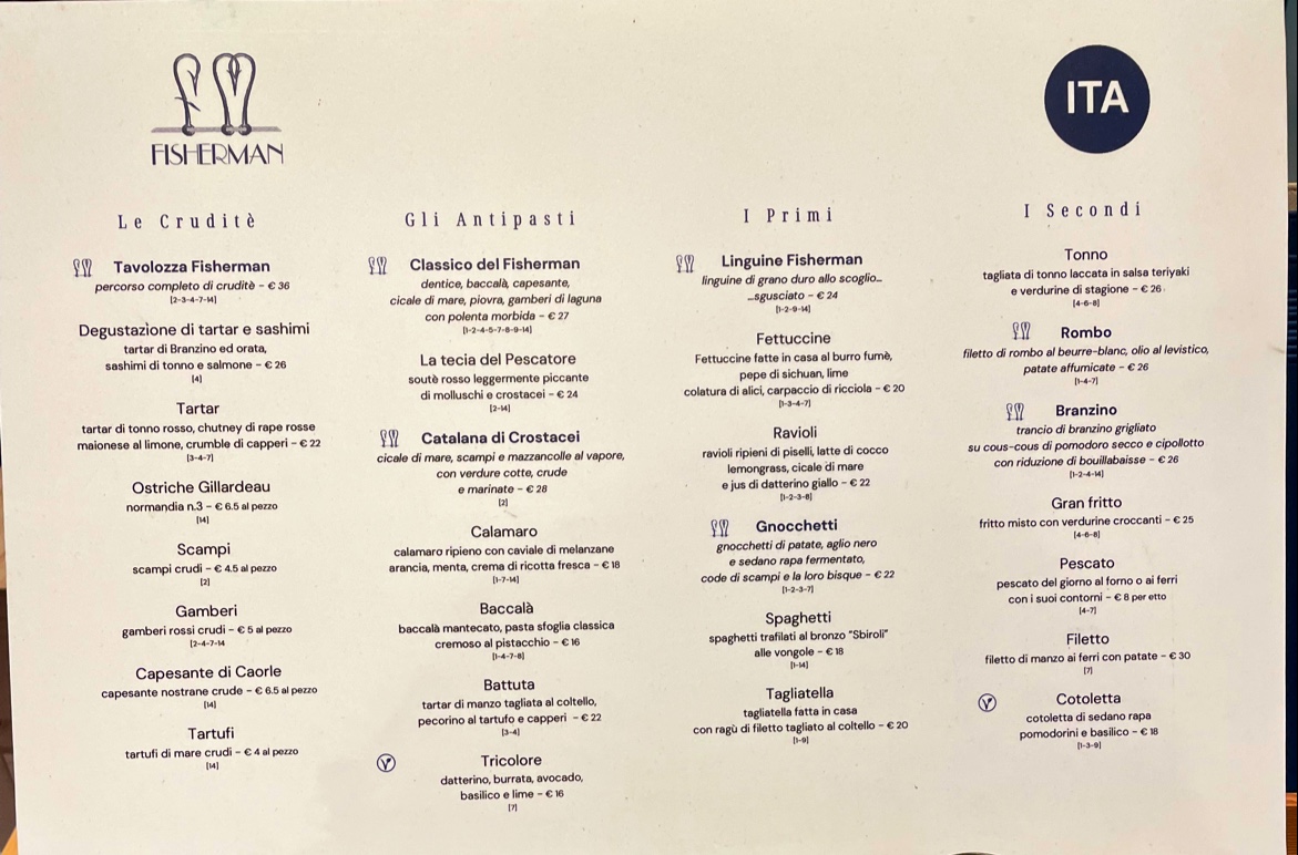 Introducing the menu at Fisherman, located on Via Bafile in beautiful Lido di Jesolo, Italy, is an experience that blends culinary artistry with coastal charm. Under the masterful guidance of Chef Gianpaolo, guests are treated to a menu that highlights the freshest seafood, making every dish a celebration of flavors.